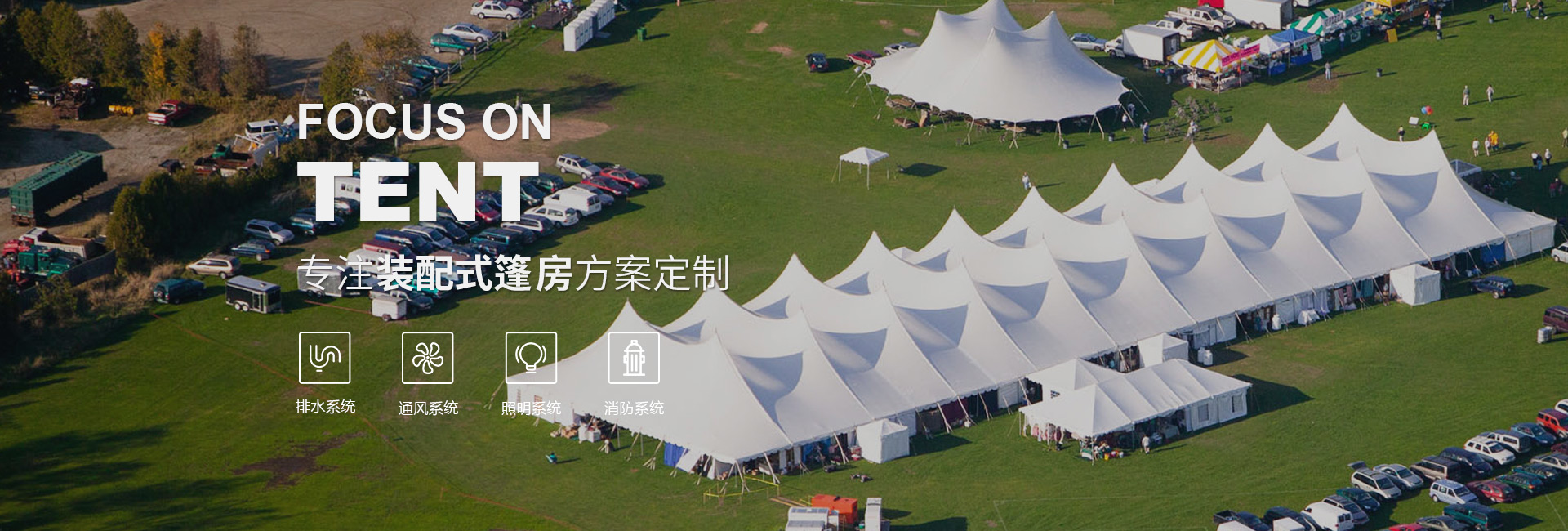 我們公司生產的產品系列凈跨3-30米:人字形帳篷,弧頂帳篷,尖頂篷房,多邊形篷房,組合篷房,彎柱篷房,球形帳篷。