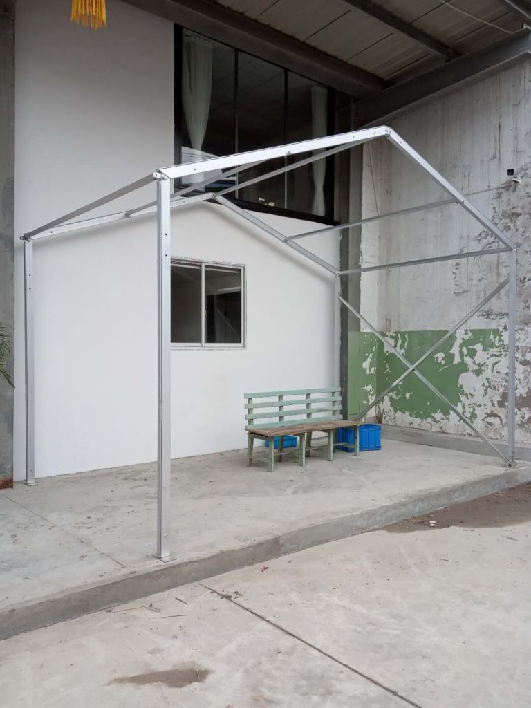 篷房從外觀來看,主要是形狀的不同,也就是頂部形狀和圍布材質(zhì)的不同。內(nèi)部結(jié)構(gòu)會(huì)根據(jù)篷房的跨度作一些調(diào)整,比如跨度大的,需要加固,會(huì)增加鋼絲繩和剪刀撐的數(shù)量。不論是德國篷房還是中國篷房,使用5-10年沒有問題。德國篷房由于天氣原因,框架材料的選用上使得抗風(fēng)等級(jí)略微高些,中國篷房的抗風(fēng)能力為8-10級(jí)。