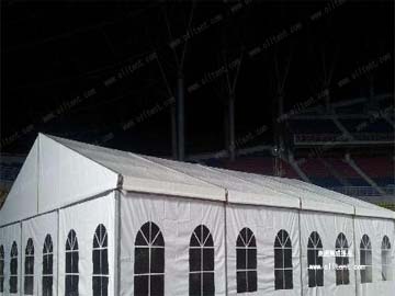 2、抗風性:沙漠地區風沙特別大,而篷房建筑的框架是采用6061-T6的優質鋁合金型材,有著極強的抗風能力,常規可以抵抗8-10級大風,額外情況還可以通過加厚型材、增添加強措施等提升篷房的抗風能力。同是采用PVC材質的篷布也有很好的抗撕裂性能,亦都可以有效抵抗風沙;