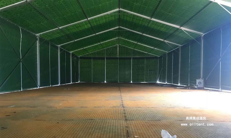 倉(cāng)儲(chǔ)篷房為臨時(shí)性建筑,對(duì)環(huán)境要求低:它不需要昂貴的混凝土基礎(chǔ),可以適應(yīng)多種環(huán)境——草地、水泥地、普通地面等自由選擇;幾乎無(wú)需審批報(bào)建。大幅節(jié)約時(shí)間成本,快速實(shí)現(xiàn)倉(cāng)儲(chǔ)擴(kuò)建;倉(cāng)庫(kù)篷房保溫性能好:采用雙層絕緣材料,有效保溫隔熱,更可當(dāng)做移動(dòng)冷藏倉(cāng)庫(kù)使用