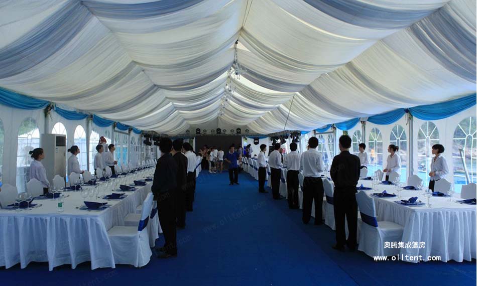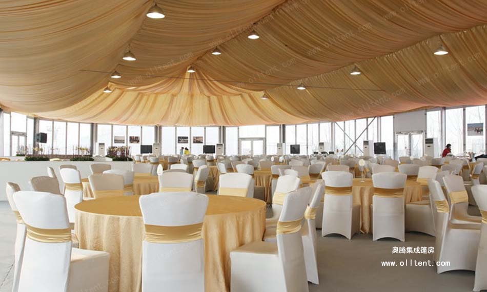 隨著社會經濟發展,居民生活質量不斷提高,人們對舉辦婚慶婚禮活動的要求也越來越高,奧騰集成篷房公司生產的婚宴篷房、婚慶帳篷、婚禮帳篷、宴會帳篷、家宴帳篷、酒席帳篷、正迎合這市場需求。