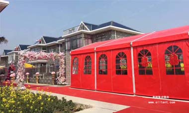 婚禮篷房租賃搭建地點靈活,海邊、草坪等都可以搭建。篷房的布置操控性也更大,篷布頂可以是紅白色的,可以是紅色或白色的,還可以是透明的,歐式的、田園風、中式等各種主題都可以在婚慶篷房里得以展現。